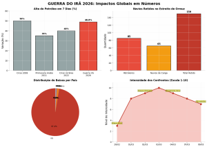 A alta é ainda mais preocupante porque ocorre em um cenário onde o Estreito de Ormuz, responsável por cerca de 20% do comércio mundial de petróleo, permanece praticamente fechado à navegação.
