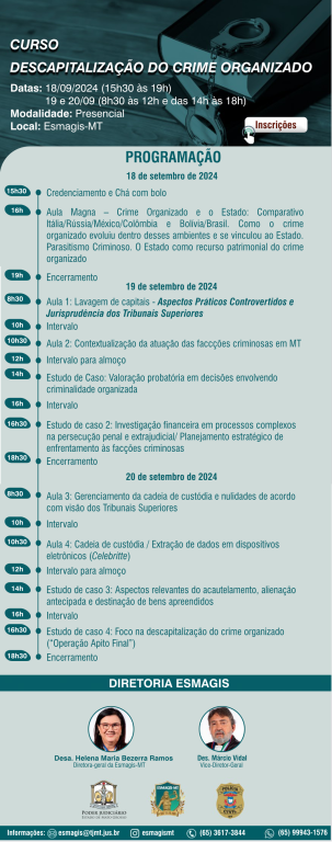 Com o objetivo de promover debate entre juízes e delegados de Polícia, sobre estratégias para combater o tráfico ilícito de entorpecentes, a Esmagis-MT realizada nos
