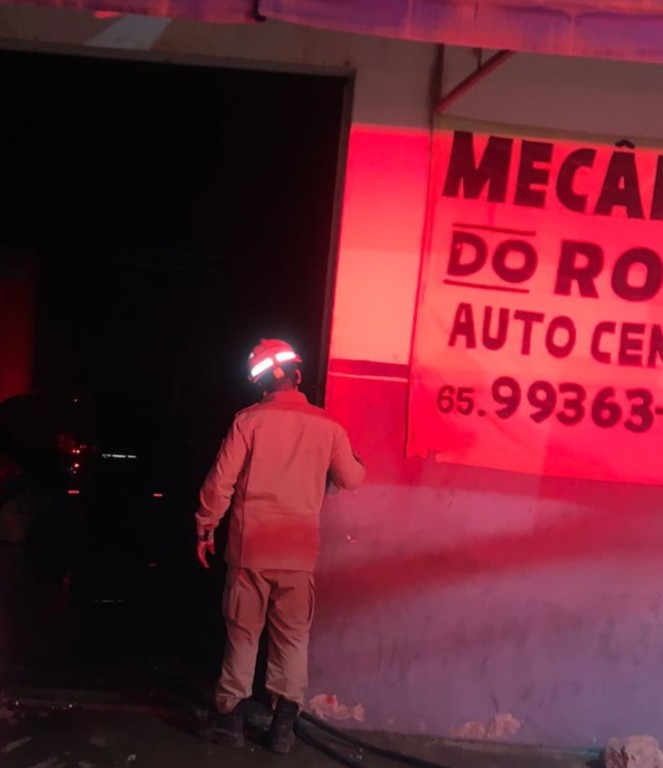 O Corpo de Bombeiros Militar de Mato Grosso (CBMMT) combateu, nesta terça-feira (10.09), um incêndio em uma oficina mecânica localizada no município de Santo Antônio
