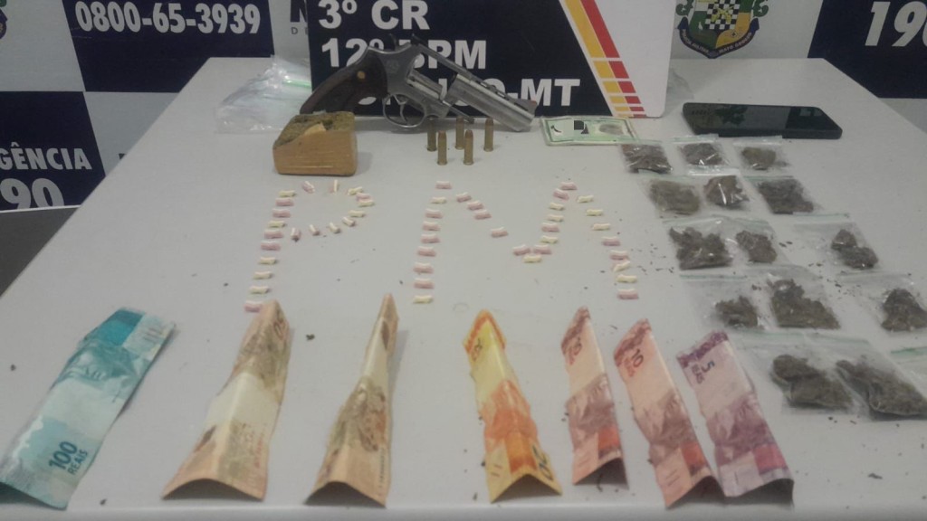 Policiais militares do 12º Batalhão prenderam um homem de 29 anos por tráfico ilícito de drogas e porte ilegal de arma de fogo, na noite
