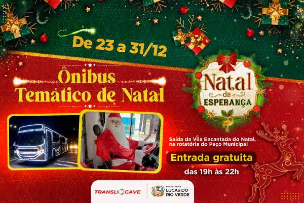 A partir desta segunda-feira (23), até o dia 31de dezembro, um ônibus temático de natal integrará a programação do Natal da Esperança da Prefeitura de