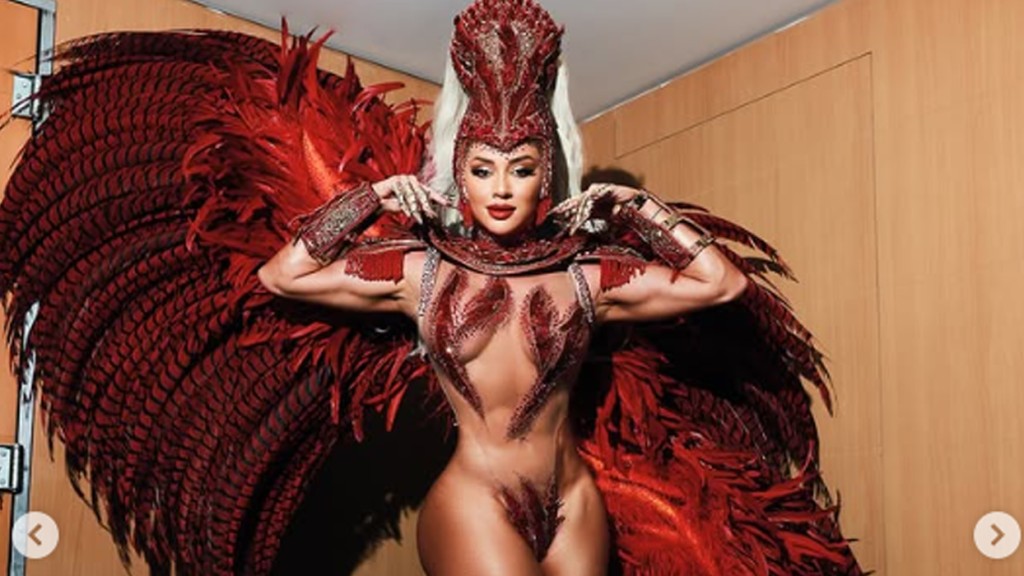 Rainha de bateria da Barroca Zona Sul, no Carnaval de São Paulo, Juju Salimeni, 38, escolheu uma fantasia sexy, que deixou o corpo musculoso em