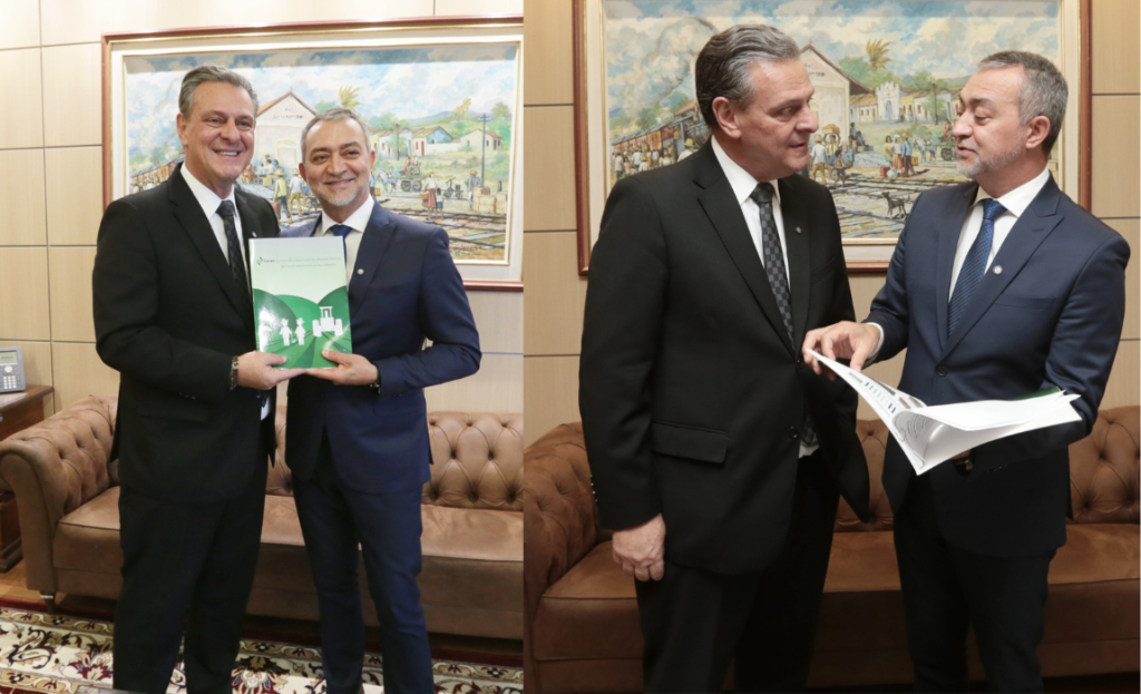Nesta quinta-feira (13), o ministro da Agricultura e Pecuária, Carlos Fávaro, recebeu o presidente da Companhia Nacional de Abastecimento (Conab), Edegar Pretto, no Ministério da