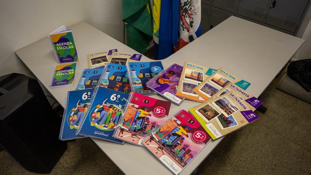 Alunos do ensino fundamental, a partir do 3º ano, começaram a receber as apostilas do Aprende Brasil, do Grupo Positivo, nesta terça-feira (18). O material