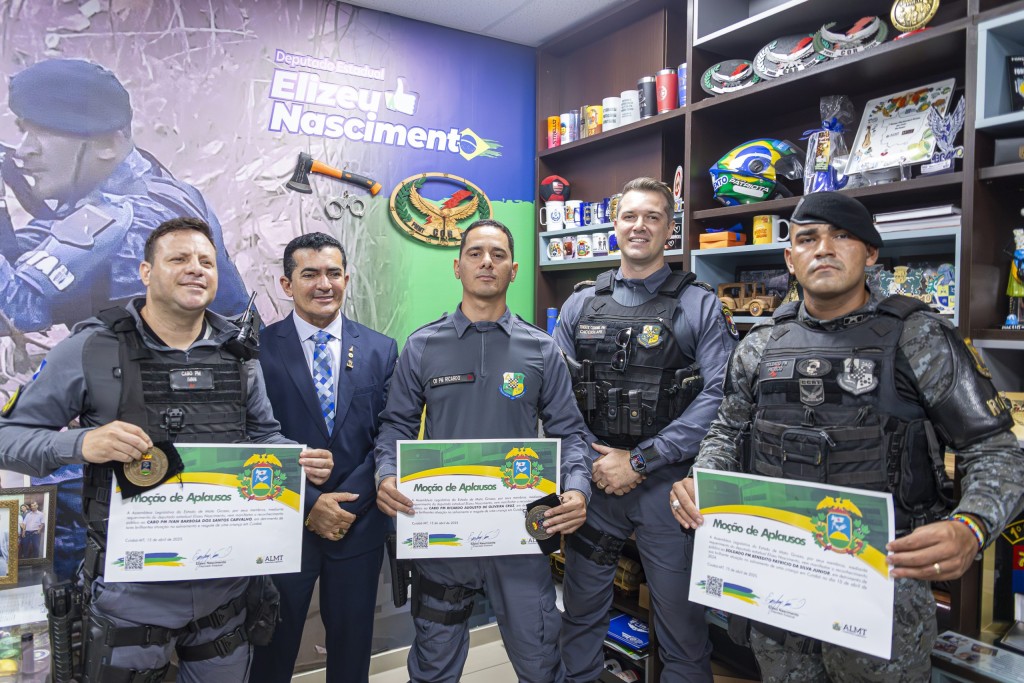 Policiais militares que participaram do salvamento e resgate de uma recém-nascida e de uma criança de um ano e quatro meses, ocorridos na semana passada,