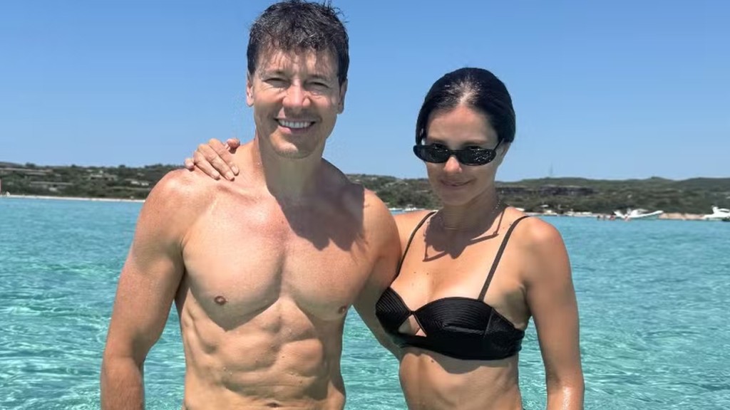 Após Itália, Rodrigo Faro e Vera Viel ostentaram corpos sarados em uma ilha francesa, neste sábado (5). O casal de apresentadores está com as três