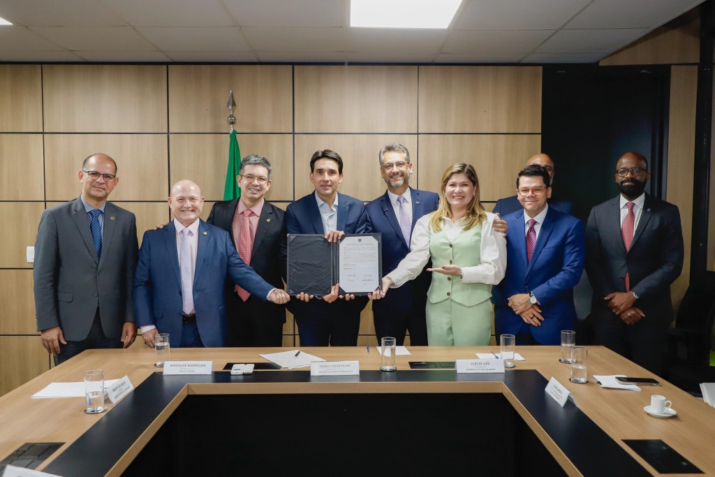 O ministro de Portos e Aeroportos, Silvio Costa Filho, participou nesta segunda-feira (15), em Brasília, da assinatura do termo de compromisso que garante o repasse