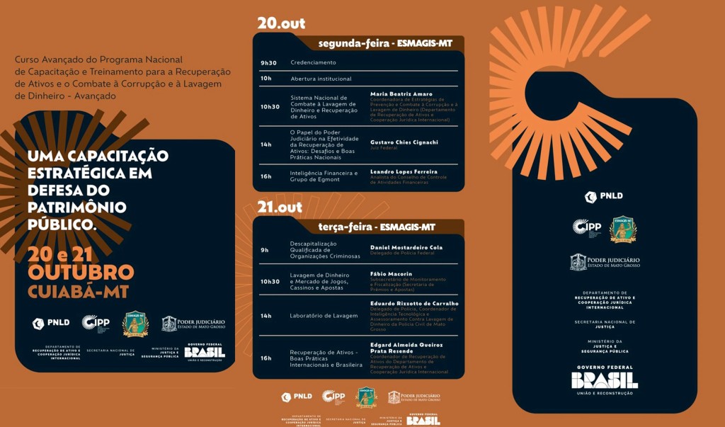 Nos dias 20 e 21 de outubro, o Tribunal de Justiça de Mato Grosso (TJMT) sediará presencialmente o curso “Programa Nacional de Capacitação e Treinamento