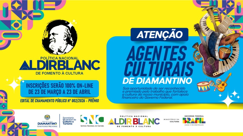 A Prefeitura de Diamantino, por meio da Secretaria Municipal de Cultura e Turismo, lançou o Edital de Chamamento Público nº 002/2026 – Prêmio, destinado à