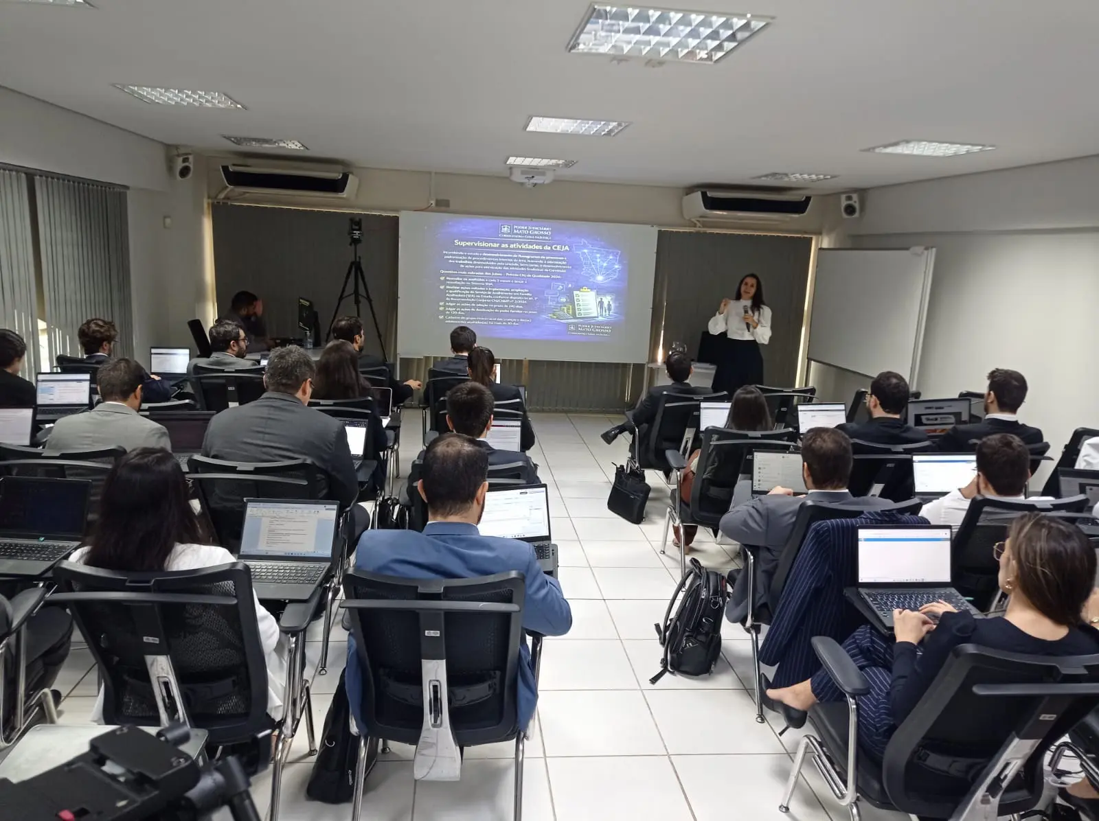 A abertura da semana do Curso Oficial de Formação Inicial (Cofi 2026), na última segunda-feira (23 de março), contou com uma aula conduzida pela juíza Anna Paula Gomes de Freitas, que apresentou aos juízes substitutos um panorama prático das atribuições da Corregedoria-Geral da Justiça (CGJ). Nesse mesmo dia, o Núcleo de Cooperação Judiciária (NCJUD) foi apresentado aos novos magistrados pela coordenadora do núcleo, juíza Henriqueta Lima.