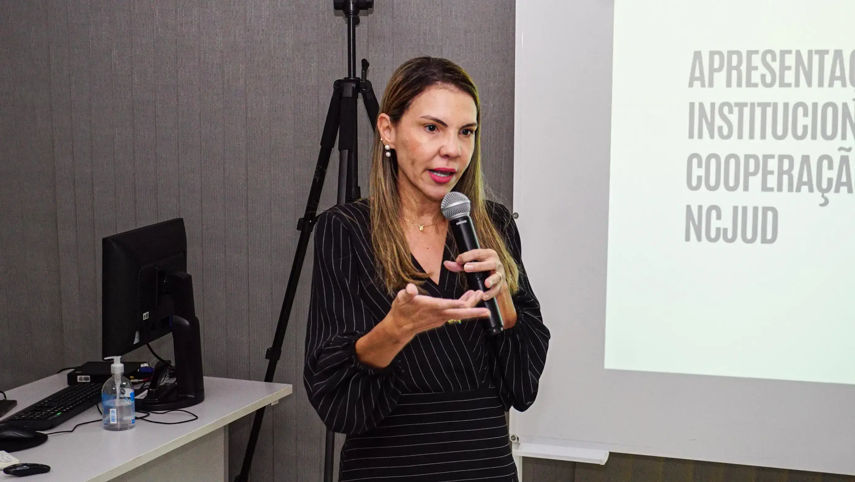Na sequência, a juíza Henriqueta Lima conduziu a exposição institucional sobre o NCJUD e destacou a cooperação judiciária como instrumento essencial para ampliar a eficiência, a celeridade e a efetividade da prestação jurisdicional. Os participantes conheceram a estrutura do NCJUD, exemplos práticos de cooperação utilizados na rotina da magistratura e as funcionalidades do portal do núcleo, que reúne cartilhas atualizadas, termos vigentes e materiais de apoio.