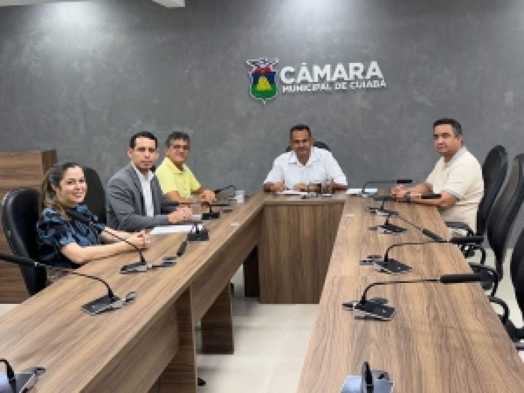 Reuniram-se na manhã desta sexta-feira (14), na Câmara de Cuiabá, os vereadores Sargento Joelson (PSB), Cezinha Nascimento (União Brasil) e Marcrean Santos (MDB), membros da Comissão de Regularização Fundiária. O secretário interino de Habitação e Regularização Fundiária, Willian Campos, e a adjunta Michelle Dreher estiveram presentes na reunião da comissão.&nbsp