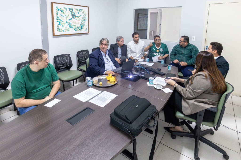A foto ilustra os integrantes do Comitê de Governança e Gestão Fiscal reunidos numa sala. Todos estão sentados e discutindo ações em conjunto.