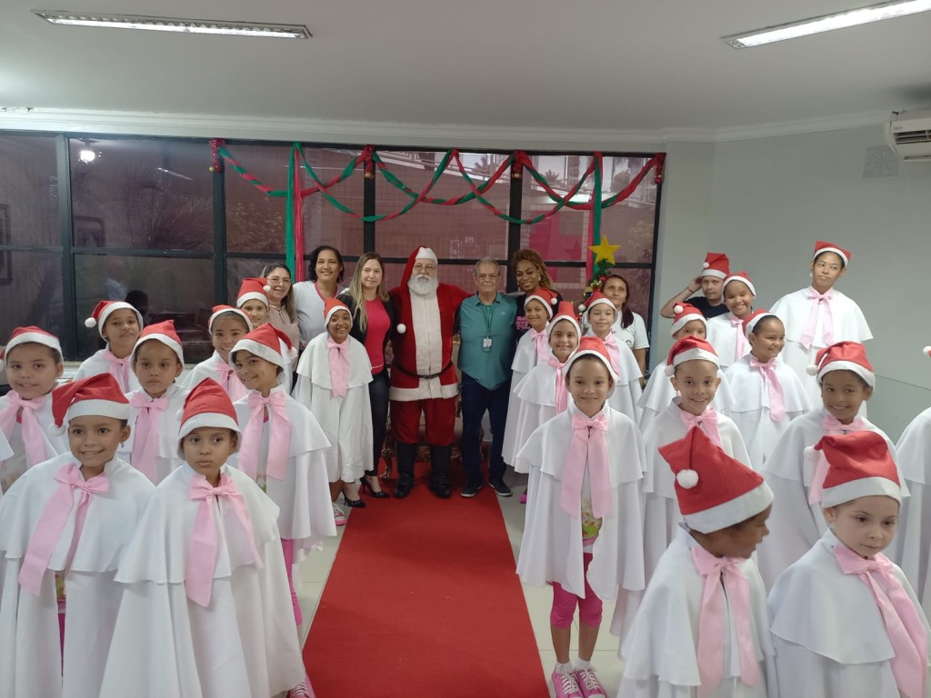 O evento contou com a participação do coral formado pelas meninas do Programa Siminina, que encantaram a todos com músicas natalinas. Além disso, a presença do Papai Noel trouxe alegria, especialmente às crianças, que puderam se deliciar com uma mesa de guloseimas preparada com a colaboração do vereador Mário Nadaf, responsável pelas doações de refrigerantes e salgados.
