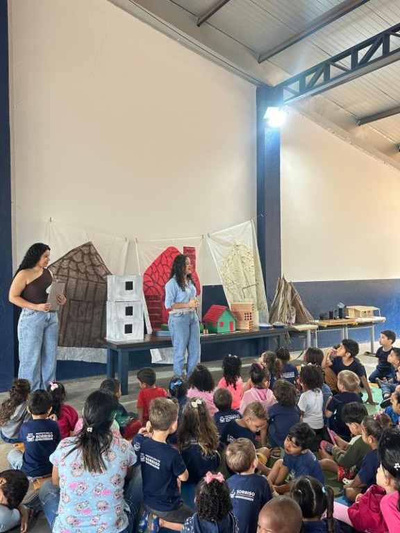 Na unidade, junto à Mailla, Tauane conversou com as turminhas do Maternal II dos períodos matutino e vespertino sobre os diferentes tipos de construção. A palestra integra o projeto pedagógico “Eu e meu mundo”, desenvolvido no Cemeis.