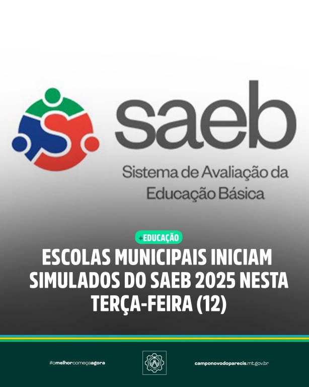 A partir desta terça-feira, 12 de agosto, as escolas da Rede Municipal de Ensino de Campo Novo do Parecis darão início aos simulados do Sistema de Avaliação da Educação Básica (SAEB) 2025.