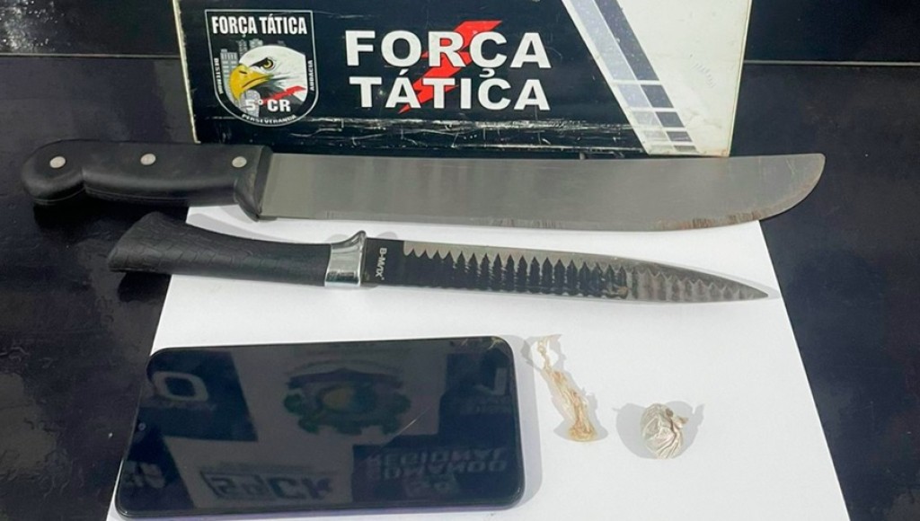 As equipes ainda apreenderam uma faca tipo peixeira e um facão. Segundo as vítimas, as armas foram utilizados para ameaçá-los. A quadrilha foi encaminhada à delegacia para registro do boletim de ocorrência.