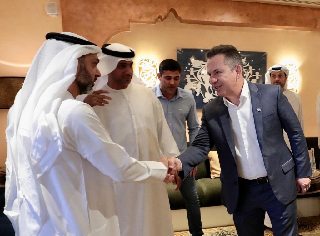 Em agendas nos Emirados Árabes Unidos, o governador Mauro Mendes tem buscado expandir as relações comerciais de Mato Grosso com aquele país.