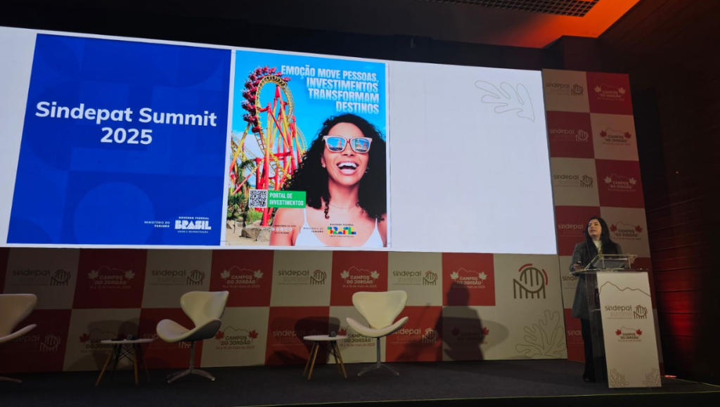 O Ministério do Turismo participa do SINDEPAT Summit 2025, principal encontro da indústria de parques, atrações turísticas e entretenimento do país, que ocorre de 14 a 16 de maio, em Campos do Jordão (SP). A diretora do Departamento de Investimentos, Crédito, Parcerias e Concessões no Turismo, Viviane de Faria, representou a Pasta e apresentou os principais avanços e oportunidades para o setor, destacando as mudanças trazidas pela Nova Lei Geral do Turismo.