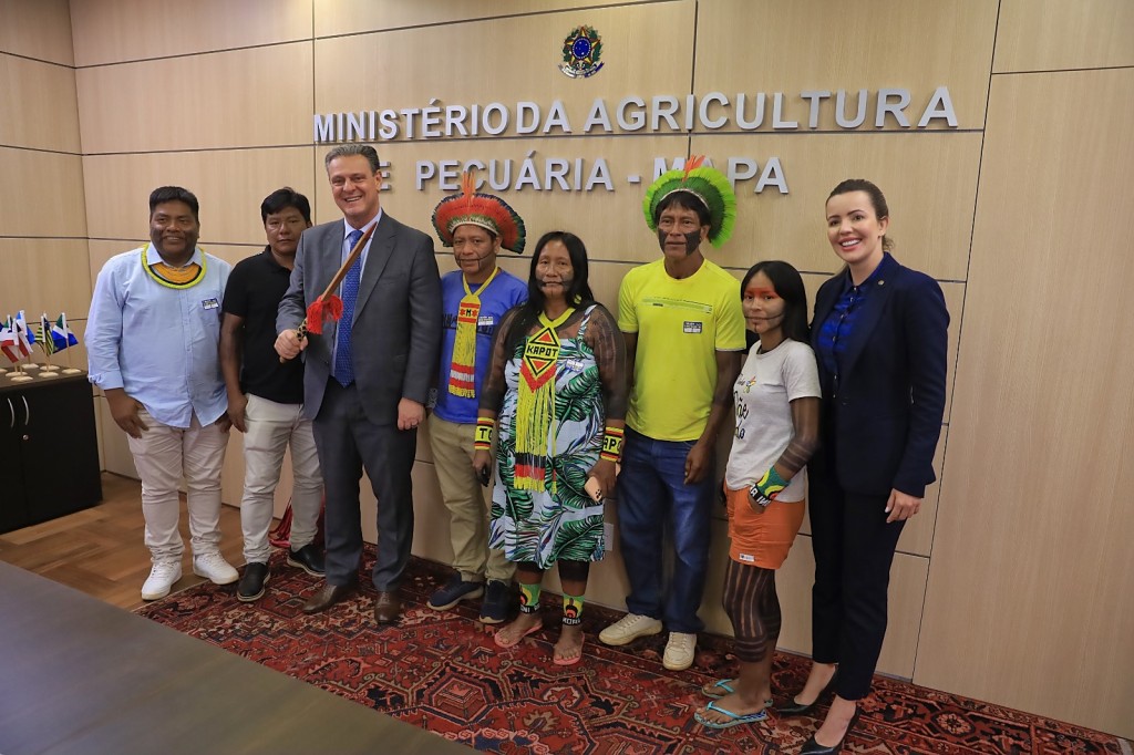 O ministro da Agricultura e Pecuária, Carlos Fávaro, recebeu representantes da Terra Indígena Capoto Jarina, localizada no município de Peixoto de Azevedo, em Mato Grosso, para tratar de apoio à produção de arroz para a segurança alimentar dos indígenas.