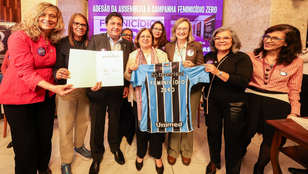 O Ministério das Mulheres recebeu novos parceiros na campanha permanente de mobilização nacional pelo Feminicídio Zero nesta segunda-feira (14). A ministra participou de solenidade na Assembleia Legislativa do Estado do Rio Grande do Sul (ALRS), onde foi formalmente assinada a adesão à campanha da casa legislativa e dos times de futebol Grêmio e Internacional, além da Universidade Federal do Rio Grande do Sul. O evento reuniu autoridades estaduais e federais e a ministra foi enfática ao destacar os dois maiores desafios de sua gestão: igualdade salarial entre mulheres e homens e enfrentamento às violências de gênero.