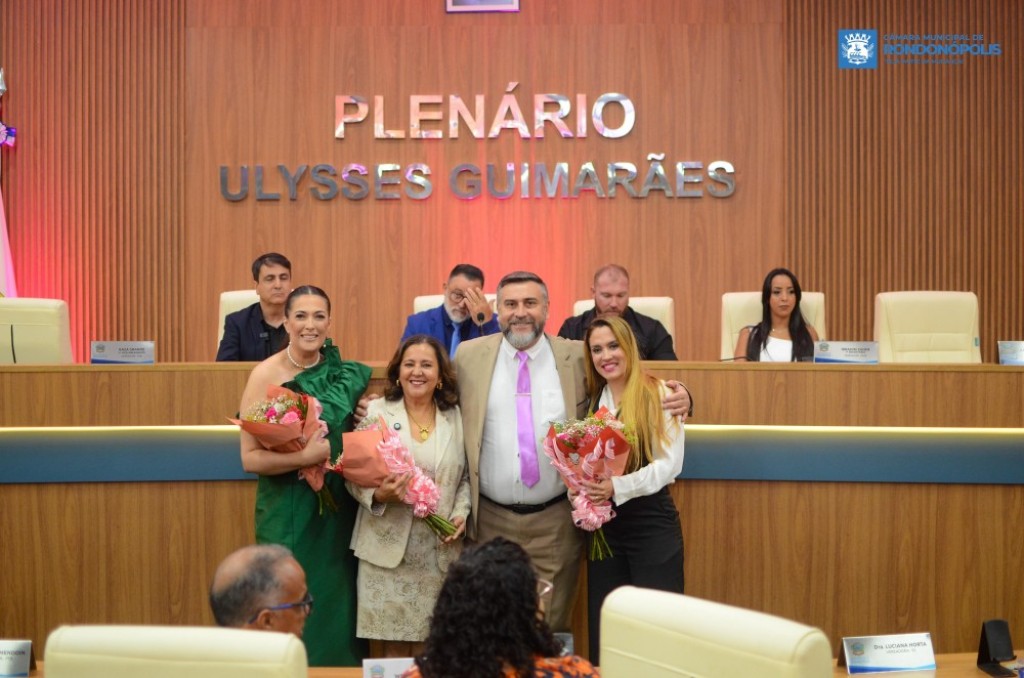 Mulheres são homenageadas durante Sessão Solene. A Câmara Municipal realizou uma sessão solene para homenagear mulheres incríveis com a medalha Rosa Bororo, na sexta-feira (7). Este evento foi um reconhecimento do trabalho e da dedicação das mulheres de Rondonópolis. O presidente da Câmara, Paulo Schuh, fez algo muito simbólico ao passar o bastão para a vereadora Kalynka Meirelles presidir a sessão. Isso não só destaca a importância da liderança feminina, mas também mostra como é preciso avançar na valorização das vozes femininas na política. Durante a cerimônia, Paulo Schuh, também prestou uma homenagem especial às vereadoras da Casa de Leis, Luciana Horta, Mariúva Valentin e Kalynka Meirelles. Ele entregou buquês de flores a cada uma delas, um gesto simples, mas significativo que demonstra o respeito e a admiração que têm conquistado ao longo do seu trabalho. “A medalha Rosa Bororo é mais do que um prêmio, é um símbolo de força e resiliência. Cada mulher homenageada representa uma história de luta e superação, e é essencial que continuemos a celebrar essas conquistas”, disse o Paulo Schuh. Para a vereadora Kalynka a presença de mulheres em posições de liderança é fundamental para promover mudanças positivas na sociedade. “Presidir a sessão de hoje foi especial e muito significativo. Precisamos apoiar e incentivar mais mulheres a se envolverem na política e em outras áreas de influência”, declarou.