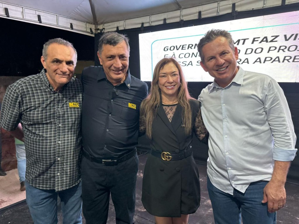 A solenidade contou com a presença do Governador do Estado, Mauro Mendes e do Chefe da Casa Civil, Fábio Garcia, que, na ocasião, acompanharam de perto o andamento das obras de infraestrutura realizadas pelo Governo do Estado em parceria com o município.