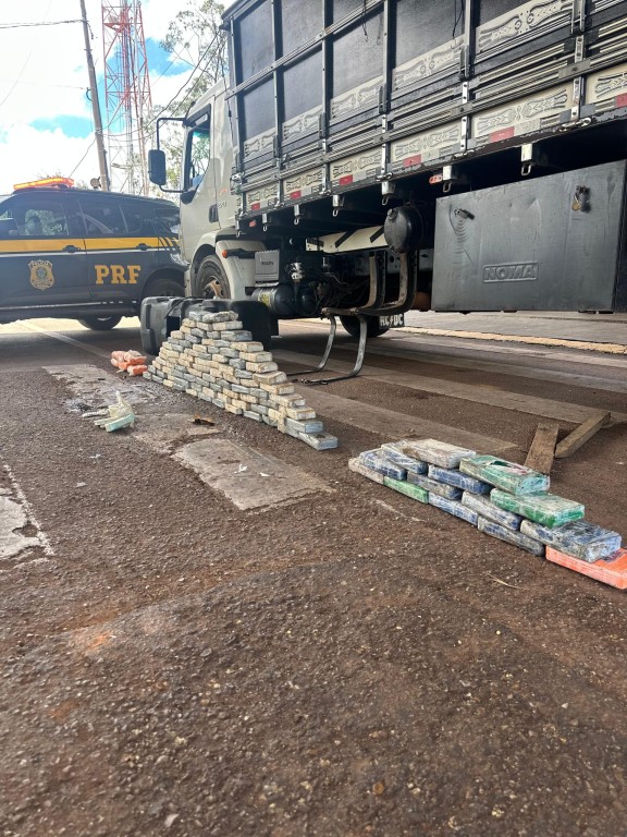 O motorista, ao ser questionado sobre a viagem, apresentou conversa desconexa e informações contraditórias, o que levou a equipe a aprofundar a fiscalização com o apoio do cão farejador K9 Zion. O cão indicou a presença de entorpecentes no tanque de combustível do veículo, onde foram encontrados 14 tabletes de cloridrato de cocaína (15,3 kg), 5 tabletes de skunk (5,5 kg) e 85 tabletes de pasta base de cocaína (91,95 kg), totalizando mais de 100 kg de drogas.