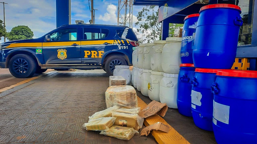 Durante a vistoria da carga, os policiais encontraram 18 galões plásticos e 6 caixas de papelão contendo o entorpecente, totalizando cerca de 600 kg, acondicionados em barras. O condutor informou que a droga foi carregada em Manaus (AM) e seria entregue em Goiânia (GO), mediante pagamento.