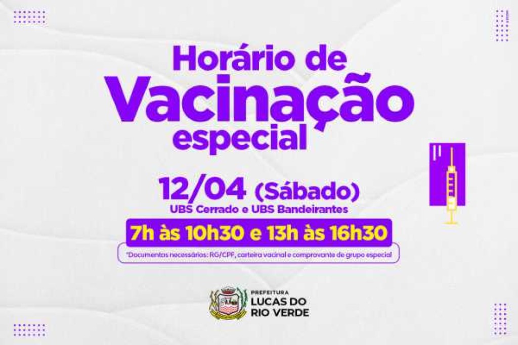 Neste sábado (12), as Unidades Básicas de Saúde (UBSs) Cerrado e Bandeirantes estarão abertas para a vacinação contra a gripe (Influenza). O Dia “D” de imunização também é a oportunidade para a população atualizar a carteirinha.