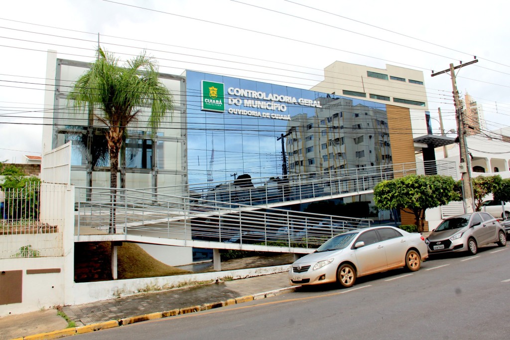 Na Imagem está a fachada da Controladoria do Município de Cuiabá. Um prédio espelhado que está situado na Avenida Mato Grosso, uma das tradicionais vias de Cuiabá.